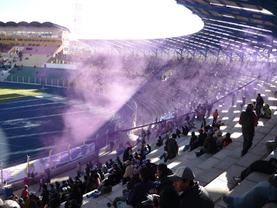 As the teams came out for the second half, the Potosi fans let off purple smoke bombs to match the colour of their club:
